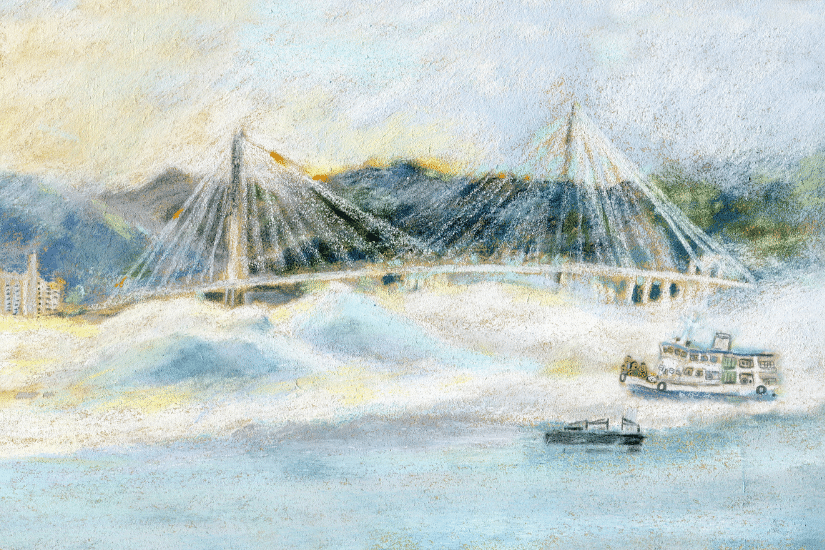 《通往大嶼山的慢船上》是啟發自一個真實故事,主角是一隻住在船上的貓和他的船員主人,故事紀錄了他們的日常,既透過現代香港人的忙碌與貓的慵懶既作對比,亦於其中穿插了海港中的真實風景。「海霧」是只在海面出現,使船都像飄浮在雲層之中的風景,每年春天都有不少香港攝影師追海霧,大家亦不妨於是次作品中細看此獨特風景。