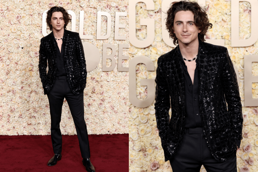 甜茶 Timothée Chalamet 與女友 Kylie Jenner 攜手出席,期間更被捕捉到二人輕輕一吻,甜蜜得羨煞旁人,成為當晚話題之一。 Timothée Chalamet 的造型一貫叛逆搖滾風格,穿上 Celine 全黑造型,外套飾滿剌繡,於低調中流露出華麗細節,非常帥氣。