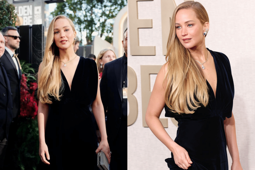Jennifer Lawrence 選以最隱陣的黑色禮服上陣,來自 Dior 的禮服以 Deep V 性感設計,依然成功搶到不少視線,再佩戴 Tiffany Blue Book 高級珠寶鑽石項鍊,以及 Jean Schlumberger by Tiffany Sea Coral 藍寶石及鑽石耳環,非常明艷照人。