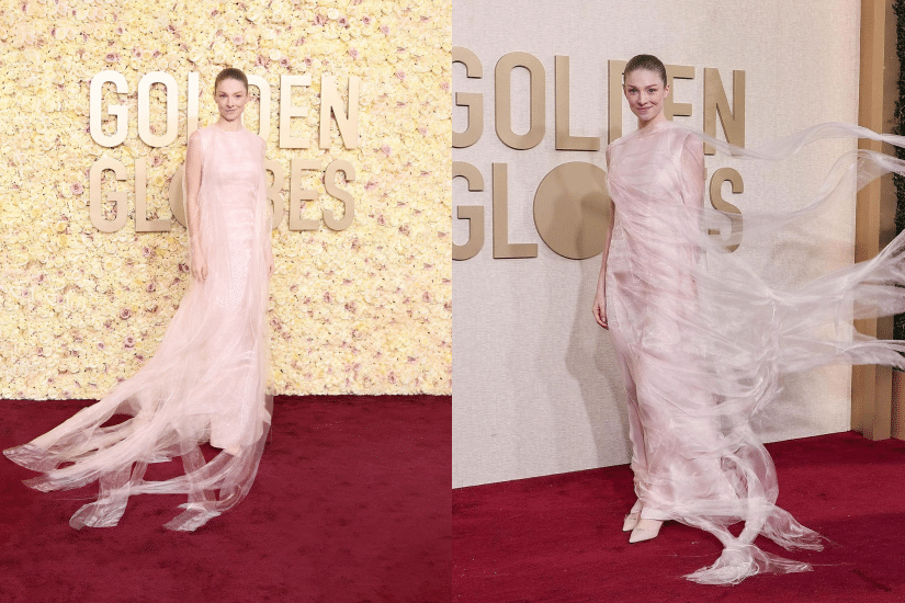 Margot Robbie 主演的《Barbie 芭比》於今屆奪下最多提名,大熱姿態的 Margot Robbie 雖然最終失落於金球影后,但仍然成功憑一身造型成為紅毯焦點。延續電影熱潮,她以 Giorgio Armani Privé 訂製芭比粉色 V 領吊帶亮片裙亮相,搭配粉色薄紗圍巾以襯托,靈感源自於 1977 年的 Super Star 芭比娃娃,成為紅毯焦點。