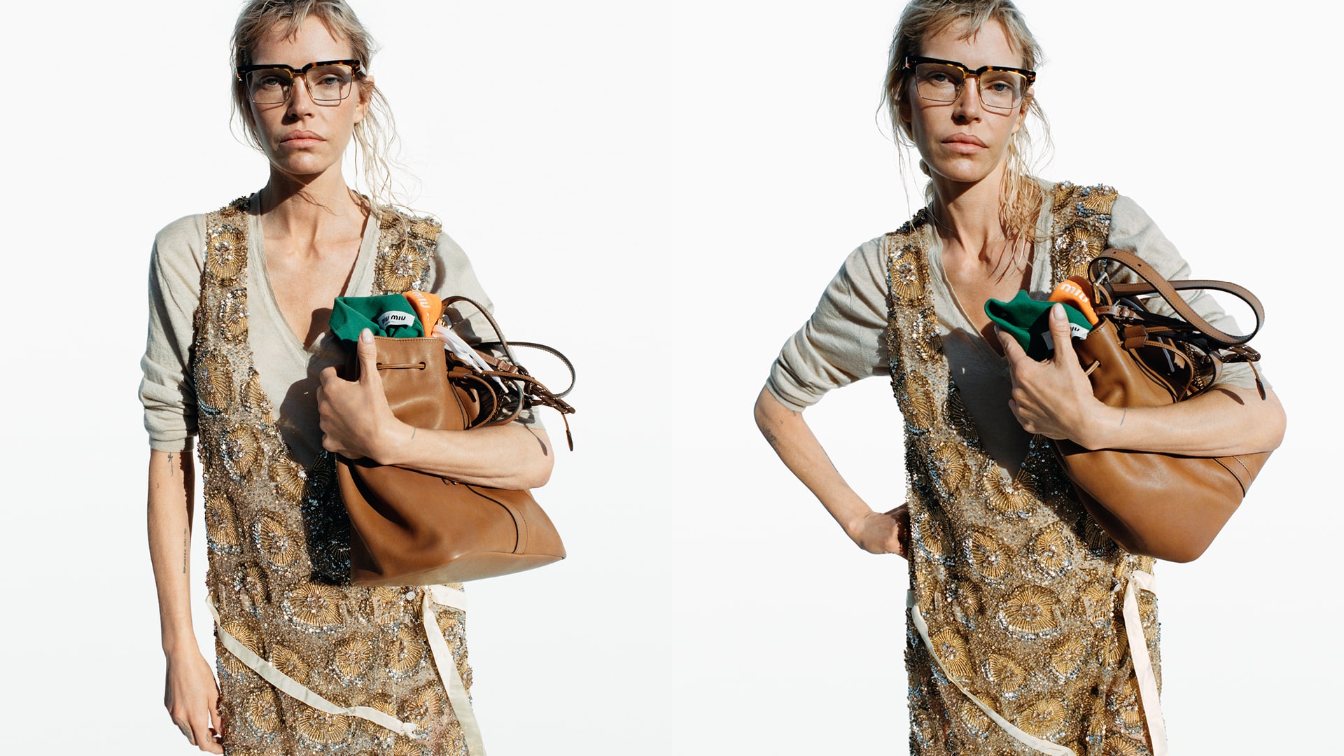 在廣告中,他們捧著裝滿物品的手袋,可能是正在外出、在回家路上、前往沙灘還是從沙灘回來? 服飾同樣充滿個性,造型經典而緊貼時下潮流,從泳裝、運動服、晚裝、複雜精細的刺繡及柔軟的皮革及麂皮。服飾顛覆用途及功能,例如吊帶浴裙配搭珠飾雞尾酒禮服,條紋 T 恤襯以金色織錦半截裙,呈現現今世代複雜、深層而多元的面貌。