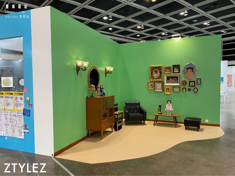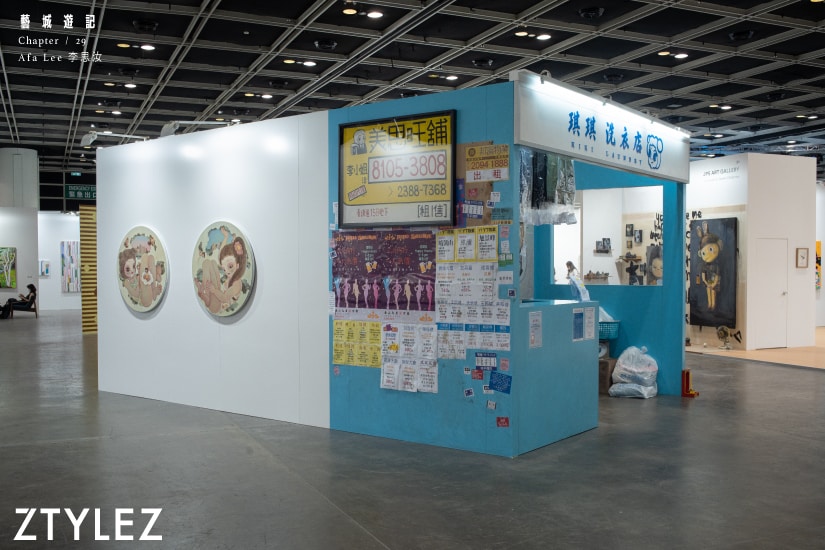 談及此,她便憶起了為「琪琪」取名的故事。就在前年的 Art Central,她製作了一個與移民潮有關的作品,裝置空間劃分為「琪琪洗衣店」和英國的居室環境,當時取名匆忙,頓時想到了「琪琪」便覺得這名字很傳統,也像是香港舊洗衣店會用的名字,便順理成章,後來也演變成畫中女生的名字,只是 Afa 再重申,「『琪琪』不是特定一個人,而是一個集合體的存在。把我留意到的人、性格或想法整合,再分裂成很多個她們去表現。」