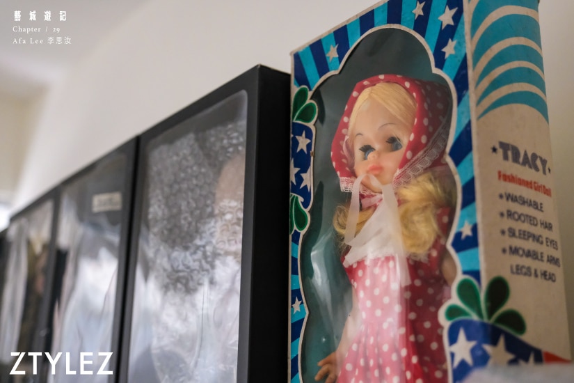 Afa 分享,那些是她從世界各地的古董店、跳蚤市場中搜羅的玩偶,還有不少玩偶沒空間擺放,只能收於箱子內。然後,她指着其中一個介紹,原來那是由她親手製成的玩偶,名叫「川花」。