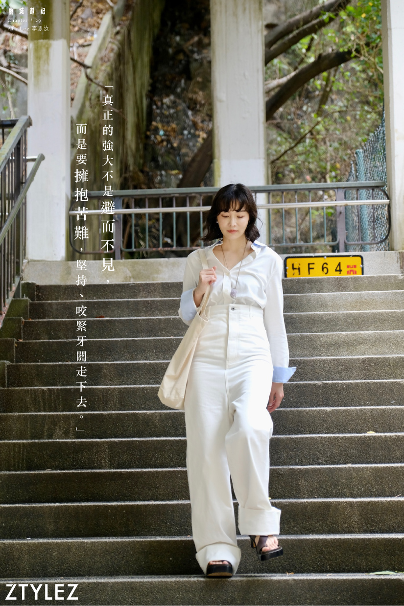 說真的,畫畫本來就是一種自我成就和自我滿足的事,要成為職業生涯確是不易,而這理想更非三言兩語、一時三刻便能證明。終於花了幾年,獲得了DFA 香港⻘年設計才俊獎和各項與藝術有關的提名,似乎有些成績可以光明正大地告訴別人,自己對畫畫是認真的,但此時她卻換了一套想法。「其實是不用告訴別人的,因為我都享受不同角色,而這些都是豐富了我的人生。」她頓了頓再解釋,「譬如說,拍攝劇集、廣告或舞台劇演出,全都是別人賦予我角色的,是被動的;唯有畫畫,是我可以收放自如,表現在自己的作品裏,主宰創作。所以創作時的自己,是最自在、舒服的狀態。」