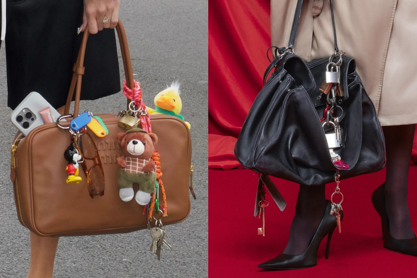 掛上鑰匙圈、金屬鏈、爬山扣等日常用品,充滿「生活感」的吊飾,成為了時尚新潮流,絕對是喜歡 Y2K 風格的女生必備。Balenciaga 這組吊飾,包括了鏡子、鑰匙、品牌字句,為手袋注入隨性的個人特性。Miu Miu 的這款 Key Ring,將皮革與鑰匙結合,型格又質感滿滿。