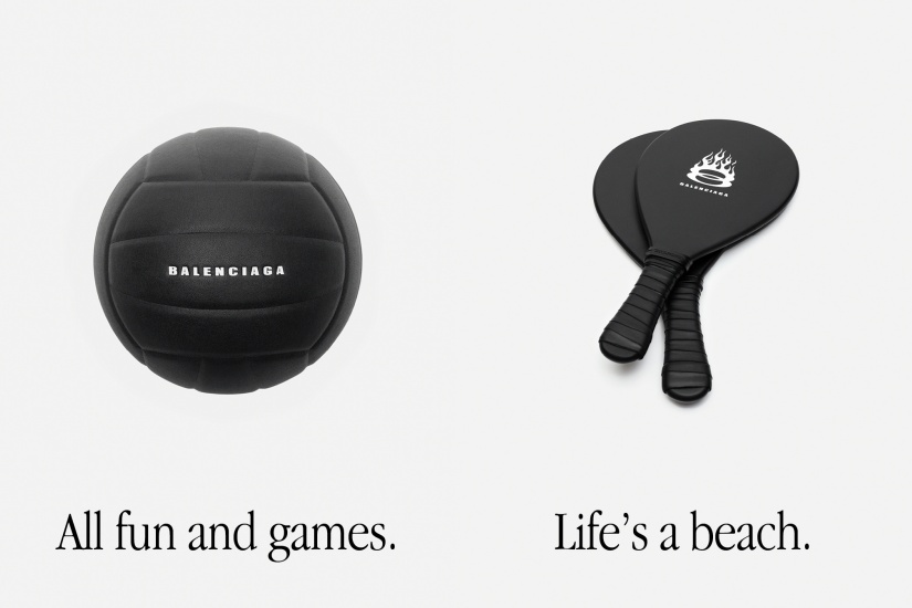 此外,Balenciaga Objects系列亦發表了一系列運動裝備和海灘配件等夏季新品以響應巴黎作為今屆奧運的主辦城市。系列單品包括沙灘排球、大毛巾、水上運動槳板、法式滾球和球拍均為純黑色設計,以印花、壓花、編織或雕刻工藝呈現造型如數字「8」的B logo品牌標誌。