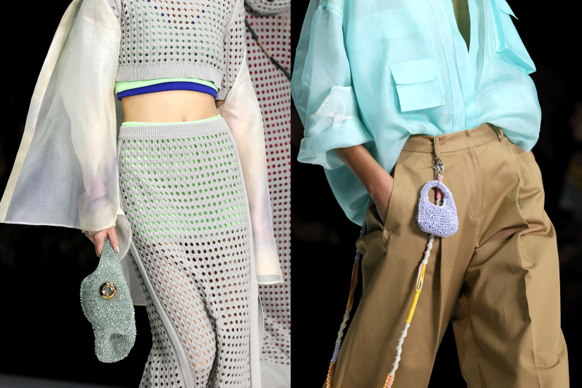 系列主打輕薄材質,營造出豐富層次效果,貫徹品牌經典簡約與低調優雅的美學,皇牌的透明針織體現了有形與無形的互動,反映現代生活的紛繁多變,同時帶來玩味和自由的觀感。系列亦為標誌性的 WIREBAG 帶來更多新袋款,通空魚網設計,超迷你或是超巨型版本,亦成為本季時尚亮點之一。