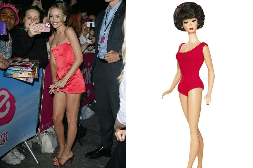 而在日前的倫敦首映派對上,Margot Robbie 這次沒有選擇 Barbie Pink 造型,而是穿上來自來自土耳其裔英國設計師 Dilara Findikoglu 的特別訂製紅色短裙亮相。畢業於 Central Saint Martins 的設計師 Dilara Findikoglu ,向來以怪誕獨特造型製造不少富爭議性的話題,設計圍繞強烈和豐富的哥德式風格色彩。Margot Robbie 這次所穿的紅色短裙,性感的緊身胸衣剪裁,配上光亮的緞面剪裁而成,完美地展現迷人身材曲線。腳上搭配一雙 Maison Ernest 紅色高跟涼鞋,手上拿著一個襯色緞的面手袋,一身打扮性感時尚,教人眼前一亮,而這套是向 1962 年的「Brunette Bubble Cut Barbie」致敬。
