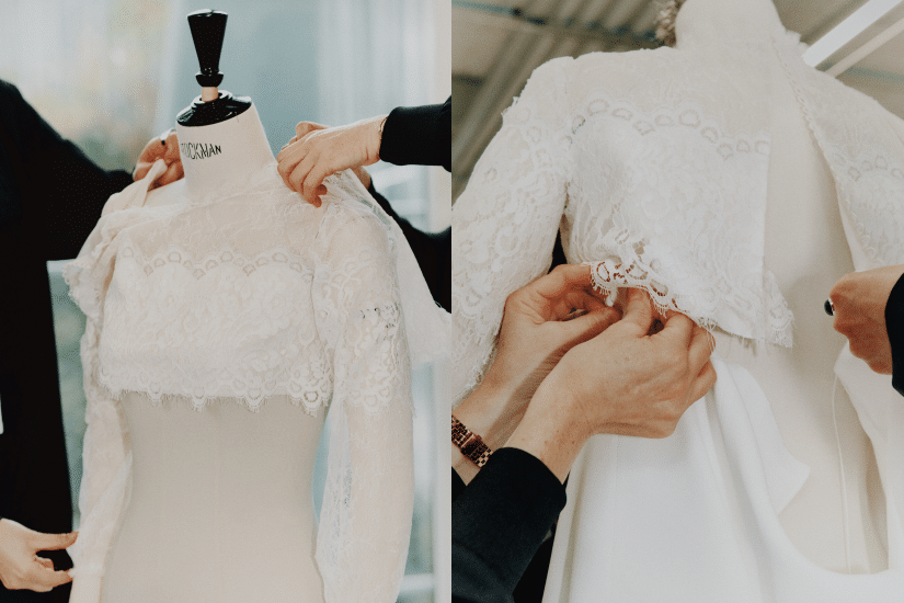 Virginie Viard 以 1967 年 Priscilla 下嫁貓王時身穿的婚紗為藍本,重新製作片中重頭戲 Cailee Spaeny 及貓王結婚一幕的婚紗戲服,以 Chanel 2020 春夏高級訂製服系列的風格為靈感,由 Chanel 旗下的高級訂製服工作室及時裝工藝坊攜手製作,配上 Atelier Montex 刺繡的頭紗及髮冠。片中尚有其他 Chanel 精品的芳蹤,包括 Priscilla 搬入 Graceland 大宅時見到的一瓶Chanel N°5 香水,暗喻她新的身份以及更成熟的女性美。