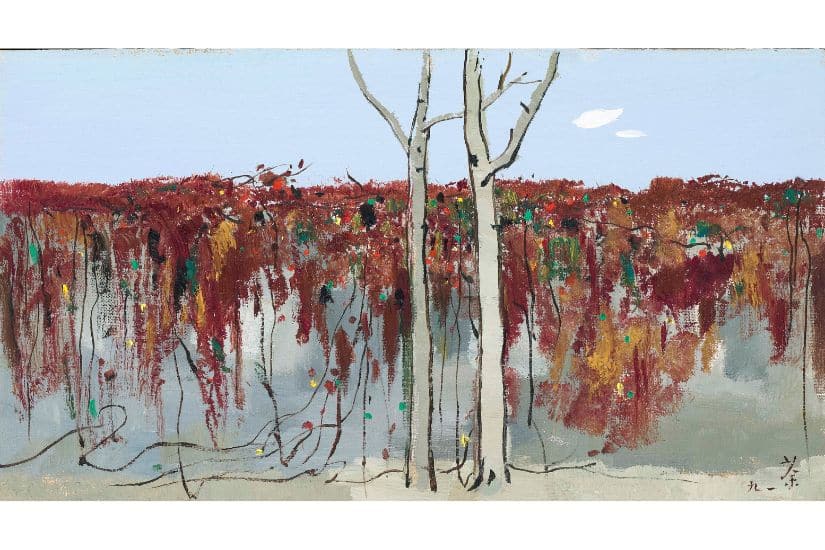 吳冠中 《牆上秋色》,1991年作 油彩 木板,30 x 54.5 公分