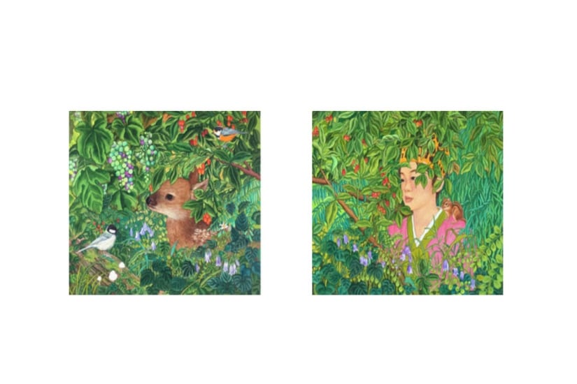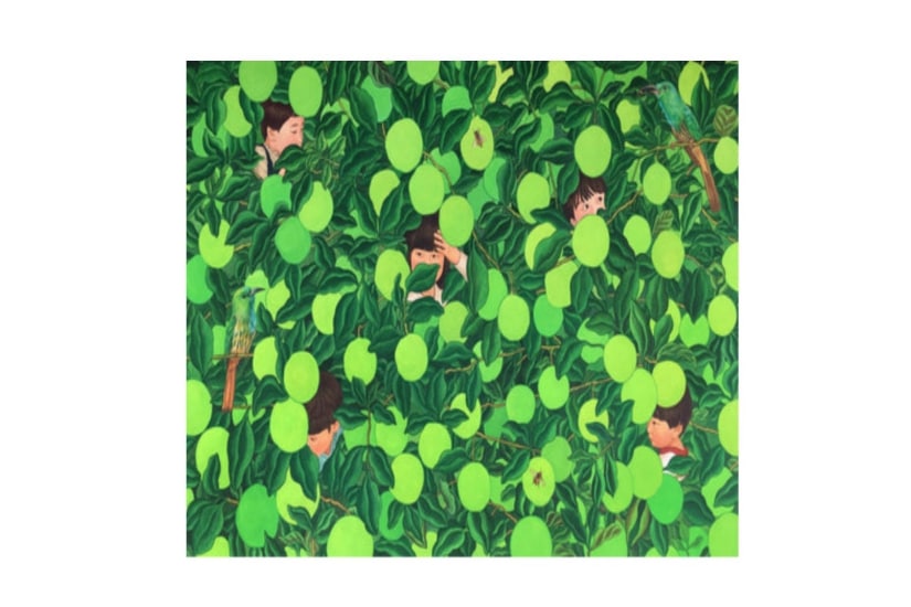綠色森林與花紋漂亮的小動物、孩子們一張張稚氣的臉、樹上新鮮的水果、粉色花朵與蝴蝶,都是韓國藝術家 Lee Na 的童年記憶,亦是她對美好的想像。 Lee Na 的畫作描繪美麗大自然世界,充滿自然生活之美,讓觀眾的想像力自由奔跑,是屬於炎熱夏天的綠色故事,讓大家在炎夏感受一陣陣的涼快寫意。