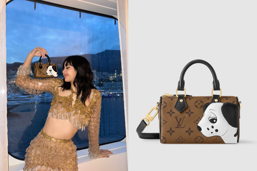 Lisa 在摩納哥欣賞F1賽事期間拍下了不少美照,其中身穿了金色亮片造型,大騷長腿與小蠻腰,非常性感,並率先使用 Louis Vuitton 2024 初秋系列中,與當代藝術家孫一鈿聯乘系列中的 Nano Speedy 手袋,採用 Monogram Reverse 帆布製作,綴有可愛的斑點狗小牛皮貼章,充滿童趣與玩味。