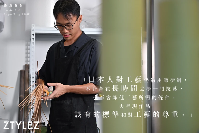 而這份匠人精神,也是他從日本工藝師身上所學。「日本人的工藝精神是很有規格的,仍沿用師徒制、遵從師父所教的一套做法,不介意花長時間去學一門工藝,也不會降低或拋棄工藝所需的條件或規則,去呈現作品該有的標準、對工藝和傳統的尊重。」