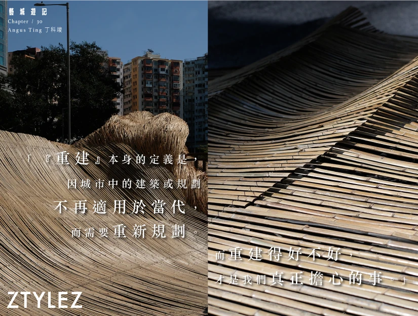 頓了頓後,Angus 再作補充,「面對改變,我們的意識總覺得像是失去或被破壞,也害怕接受新事物,就正如很多人覺得重建就一定是不好的事。但『重建』本身的定義,是指城市中的建築或規劃不再適用於當代而需要重新規劃。所以重建得好不好,才是我們真正要去想、所擔心的事。尤其是一個社區要匯合不同的人和需要照顧的事,究竟怎樣才算是好的社區呢?這些開放性問題,我希望透過作品能令大家反思。」