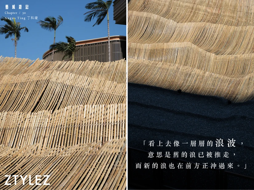而一道道的海浪緩緩沖上岸後,漸漸引來了眾人對重建項目的關注,但對他來說,更有趣的是在創作時的一番見聞。「最初設計時曾擔心老人家會不會抗拒,但沒想到老人家們大多都表示接受和開心,因竹於他們而言,是舊時很普遍甚至每天都會用到的材料,所以倍感親切感,甚至有老人家來問我能否拿一根回家;但新一代大多對竹都感到陌生。所以不同年齡層、不同人對空間的印象和敘述都很不同,是很有趣的現象。」