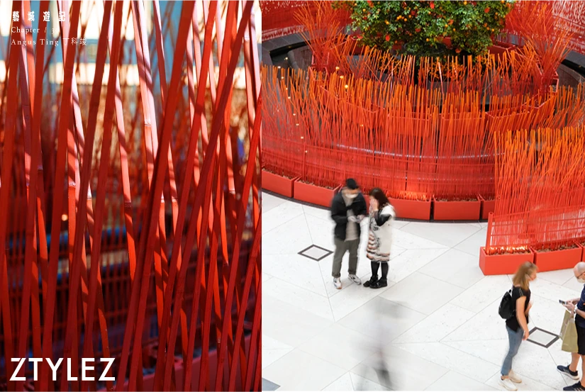 裝置結合了置地廣場中庭的水池,以三層竹圈、水、石為主。細賞會發現,當中有四款精緻巧妙的竹編圖案,分別為「繁華昌盛」、「長壽安康」、「瑞氣祥和」及「蓬勃生機」,象徵期盼新一年健康平安、一團和氣、百業興隆暢旺的心願。