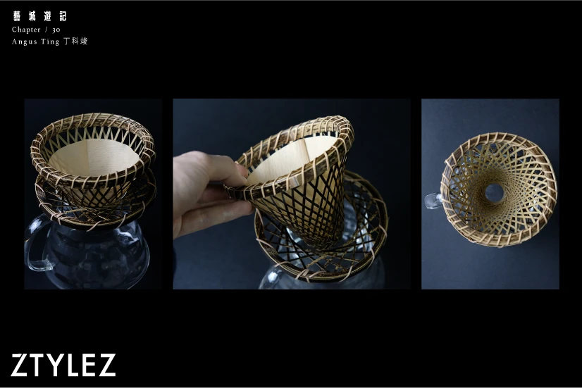 看似與藝術攀不上邊,大概是被現代人們漠視了竹的雅緻和氣度。說起來,竹本來就有着「歲寒三友」之稱,是高尚的象徵,亦是詩詞書畫裏的主角。古時的文人雅士更把竹演化為各種充滿美學價值的樂器和工藝品,展示對生活品質的追求。而 Angus 所製作的竹藝品,如花籠、水果籃、竹碟小皿、茶漏、六角花墊和咖啡濾杯等,每樣都十分精緻和細膩,滲透着高雅的日式風格和藝術氣質,也令人忘卻了其用在竹棚的粗糙感。