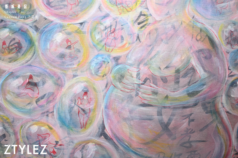 創作使她能夠自由地表達,也能療癒彼此。所以後來的〈轉化〉畫作中,她更是在「脂脂肪」的背後寫下了她和媽媽之間說過最狠的說話,例如「沒有人告訴你現在是不正常的嗎」、「變態」、「為什麼你要走一條歪路」、「我生你出來是來拿我命」等。但她坦言,在寫完後的兩個星期都不敢反轉過來看。直至看到朋友在社交平台上發佈的一張懷孕照片。「我頓時覺得這個形態、狀態,就是媽媽和孩子之間只有營養、愛和祝福的時刻,也是能轉化我們現在的執著、衝突或愛恨。」