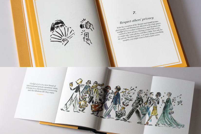 而他更是 Carlyle & Co. 重要一員 —— 因為從俱樂部網站的頁面以至會員手冊,均出自其手筆。然而,要在眾多創作中挑選其一、為大家分享最深刻之作,連他也不自覺地感嘆道:「Gosh that’s tricky!」之後,他再緩緩補充,「迄今為止令我最難忘的,是我與 Acqua di Parma, The Carlyle Hotel in New York City 的合作,那是促使了我與 Carlyle & Co. 現正進行的項目,還有另一個慶祝 Diptyque 與著名巴黎咖啡館 Café Verlet 的合作項目。」