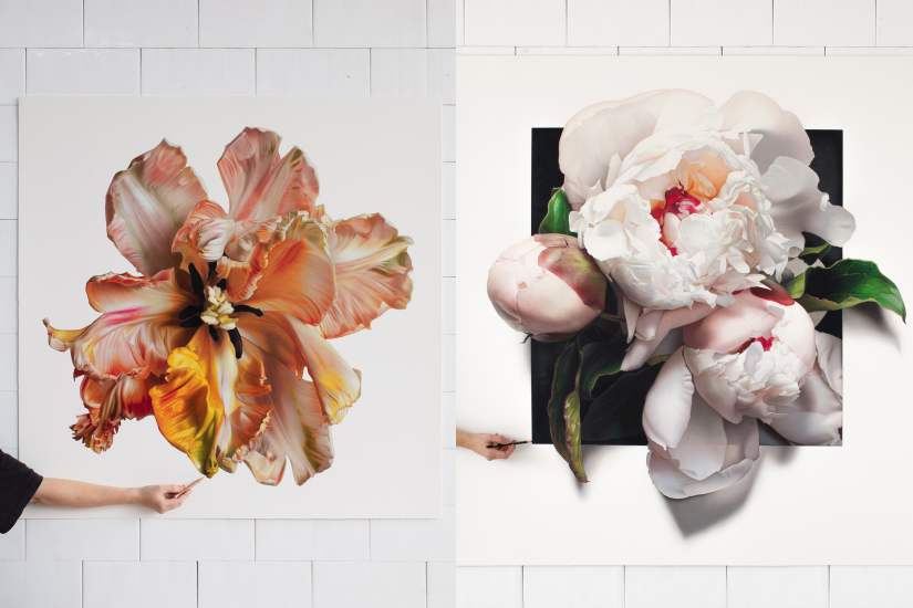 而近年,Cj Hendry的作品更是橫跨不同範疇,不論是油畫顏料、水果、動物、日常物件和各式繽紛花朵等,每幅作品都蘊藏了她細膩精確的筆觸。尤其是名為「Epilogue」的系列創作,極為精細地繪畫了寫實的花瓣紋理、皺褶、花蕊及精緻色彩,近乎找不到破綻和瑕疵。