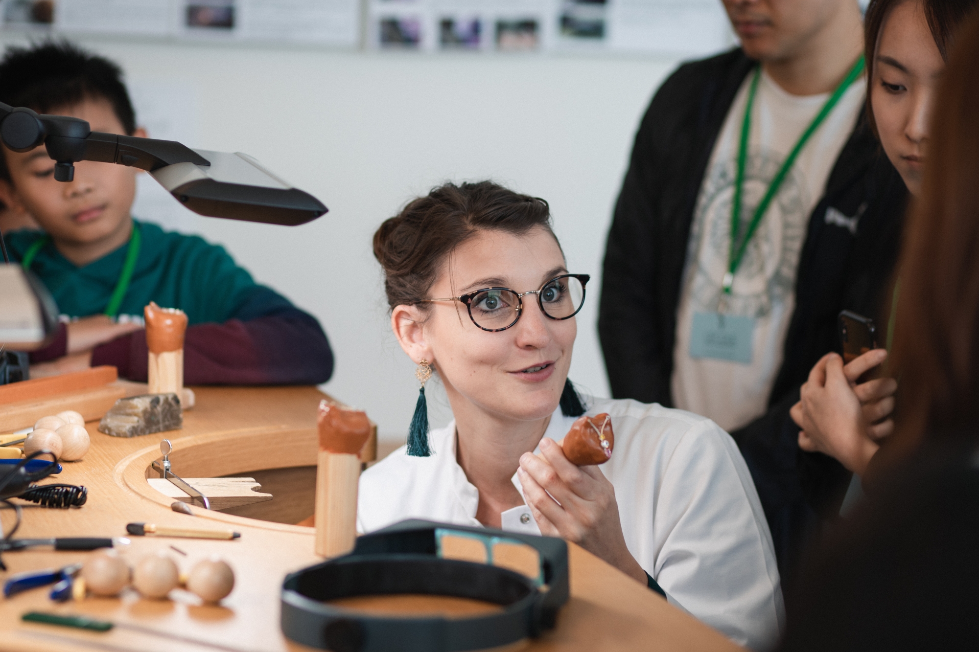 穿梭於多個課室的不同設置之中,參加者將有機會接觸珠寶藝術的不同面向,包括由學院的藝術歷史學家指導下,探索不同時代的珠寶世界,從「一段珠寶歷史:路易十四至裝飾藝 術時期」課程中學習珠寶風格的演變;在「從設計到模型」課堂演示中認識珠寶設計及創作過程,例如通過水粉畫的運用學習美學概念的表達。而對寶石世界感興趣的參加者,可以透過「鑑別寶石」的課程展示,與學院的寶石學家即場互動,多角度欣賞彩色寶石之美。