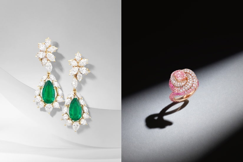 本季珠寶拍賣由一枚15.51卡艷彩黃色鑽石配鑽石戒指領銜,採用罕見於彩鑽的圓形明亮式切割。該切割方式通常會導致切割過程中原材料的極大浪費,而考慮到彩鑽的高價值,切割師通常傾向於採用能夠最大限度提高產量的切割方式。本拍品兼具少見的切割方式及最高等級的濃烈色彩,極具收藏價值。另一亮點拍品為一顆1.38卡枕形艷彩紫粉紅色鑽石。超過一卡的粉鑽極為罕見,而本次呈現的拍品帶有紫色調,更添女性優雅氣質。粉鑽配以粉紅剛玉及鑽石,採用螺旋式設計,從不同角度欣賞都顯耀眼奪目。亦有一枚2.65卡濃彩橙粉色鑽石配鑽石戒指,橙色調更添暖意,堪稱大自然的奇跡。