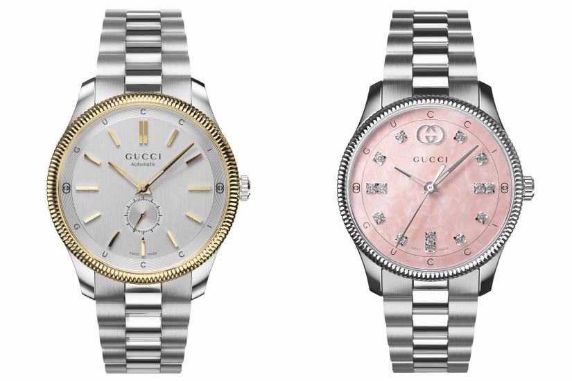 Gucci推出全新腕錶系列,保留經典時計的雅致面貌,同時融入現代元素,包括纖薄外型、獨特的凹槽錶圈、光滑的錶面修飾,以及巧妙運用的Gucci字樣和相連結雙G圖案,構成全新G-Timeless系列的特色。