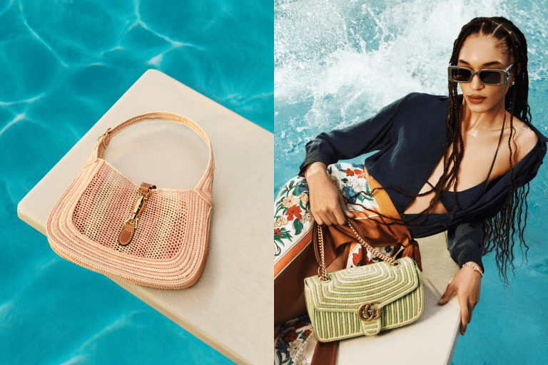 夏日造型又怎能沒有一個編織手袋呢? Gucci 最新登場的 Gucci Summer Stories 系列,為品牌經典袋款 Jackie 1961 及 Horsebit 1955 等換上拉菲草編織作演繹,並飾以皮革細節,滿滿質感。另外亦有去沙灘必備的超大容量 tote bag。兩種材質巧妙結合的質感亦體見於的 Horsebit Loafers,選用柔和的大地色調,雋永典雅。
