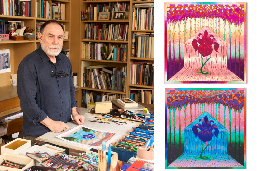 意大利藝術家Lorenzo Mattotti的「Iris Spring」方巾,以鳶尾花為主角,配以流麗的樹木與瀑布,靈感來自威登家族大宅的彩繪玻璃,呈現出優雅又夢幻的藝術風格。