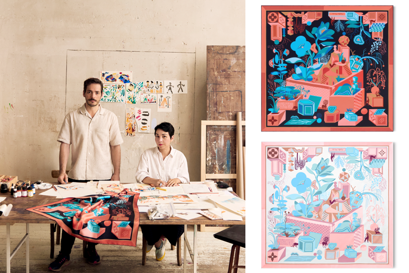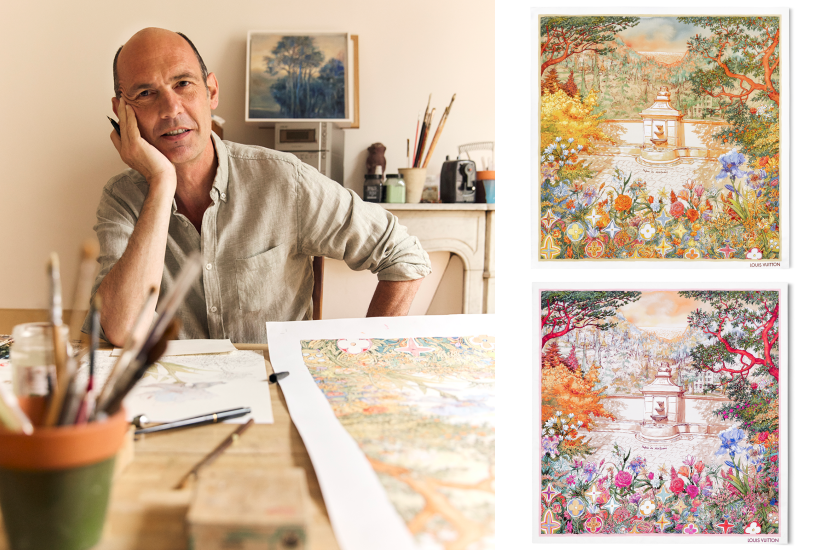 法國藝術家Nicolas de Crécy的「Parfums de Méditerranée」方巾從南法普羅旺斯取材,將芳香花園的景色與路易威登的Monogram圖案結合,營造出一種浪漫而富有詩意的視覺體驗。