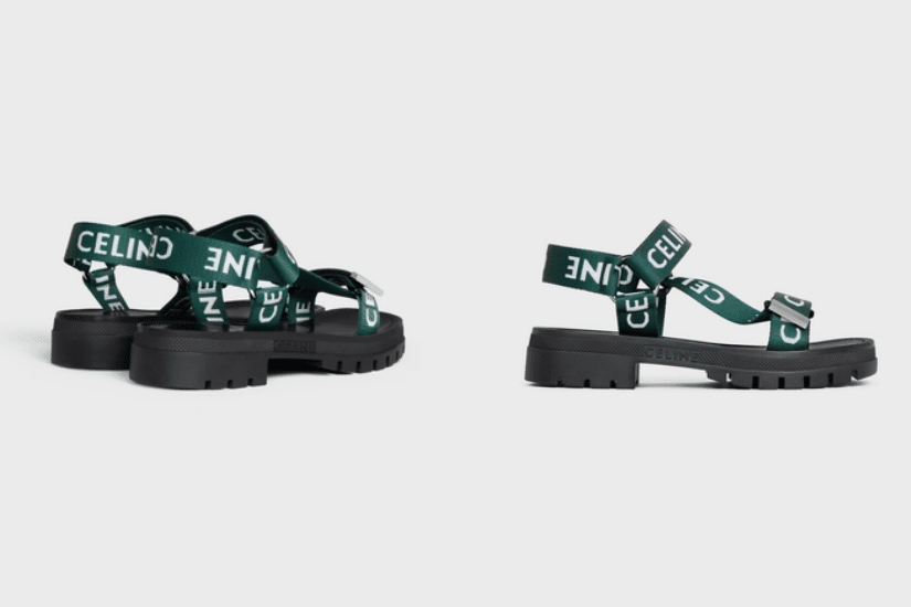 Celine 涼鞋以品牌字樣織帶為設計,簡潔鮮明,無論露趾單穿或配襯短襪仔,都時尚有個性 !