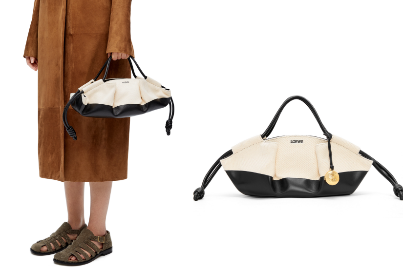 Loewe Paseo 手袋以精湛工藝打造出簡潔優雅的輪廓,獨特的柔軟褶皺結構增強了柔軟且超輕的結構。雙色版本以亮面納帕小牛皮和帆布打造,色調與質感對比鮮明,搭配 Anagram 鵝卵石掛飾,為任何造型注入時尚氣息。