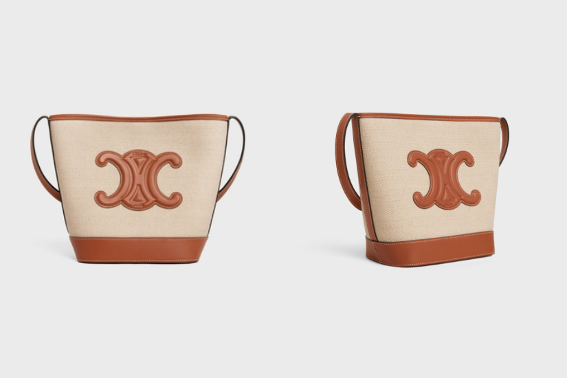 Bucket 手袋經典卻設計多變,可以搭配各種風格造型。Celine 這款 Bucket 手袋,則以立體的皮革 Triomphe 標誌作為手袋焦點。