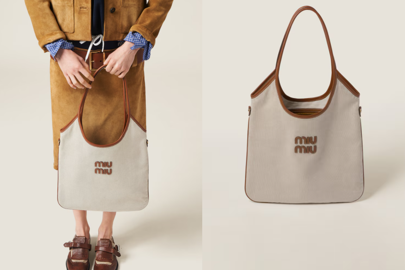 Miu Miu 可以說是近季人氣王,多款手袋都大受歡迎,而這款 IVY 帆布手袋流露城市風格,且極具夏日氣息。金色金屬飾件與皮革字母標誌為手袋注入經典魅力,為造型錦上添花。
