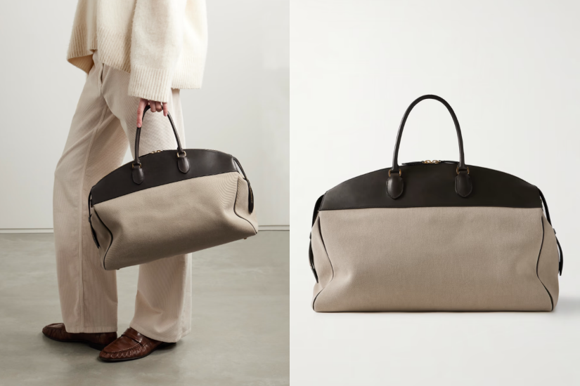 喜歡低調細膩風格的話,推介來自 The Row 的 George Bag,以皮革拼湊帆布,完美結合奢華與休閒,大容量的設計,即使要出走三天兩夜也應付自如。