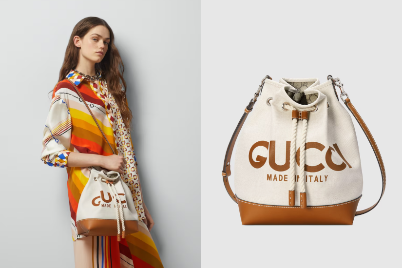 這款米色帆布肩揹袋綴有淺棕色飾邊和 GG Supreme 內裡,暗藏奢華細節,袋面飾上「Gucci Made in Italy」印花,簡單卻搶眼!