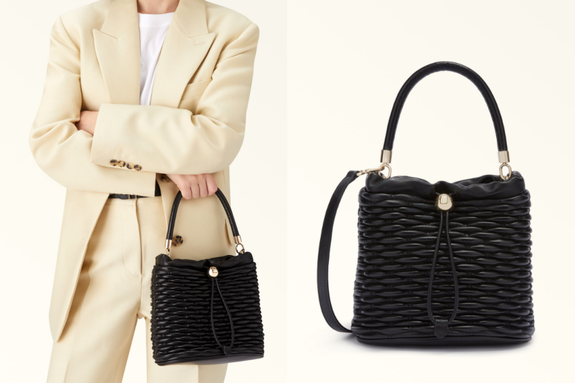 Furla Mionido 系列是充滿質感的 Nappa小羊皮為賣點,經過手藝精湛的壓花處理,呈現類似柳編花紋的獨特“鳥巢”圖案。洋溢著動感活力的迷你水桶袋,搭配抽繩開合和珠寶細節設計,標誌性的球形 FURLA 標誌,並配有手柄和肩帶,適合不同的場合打扮。