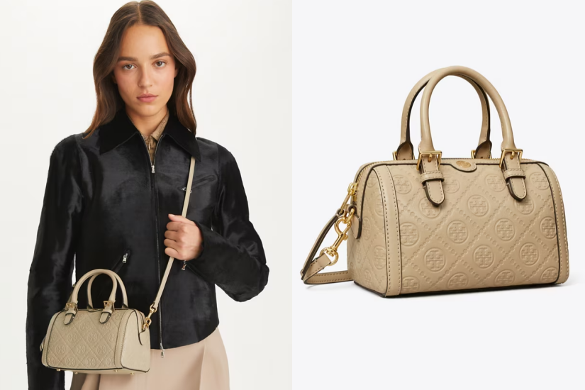 波士頓包是近季的人氣之選,最大吸引之處是雖然手袋看起來小巧,但卻容量十足。Tory Burch 這款 T Monogram Barrel Bag 以壓紋效果呈現標誌性雙 T Logo,將經典輪廓將奢華與實用融為一體。