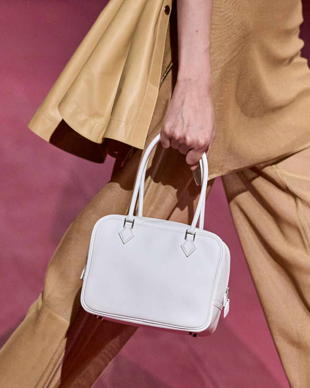 今季亦有極簡代表方型手提包 Plume ,長青的 Plume 手袋系列一直是 Hermès 的低調成員,其設計復古優雅,簡約卻精緻。今季品牌推出的白色和磚紅色,手袋內部用上紅色內襯,細節中顯心思。