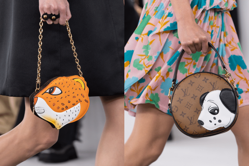 這次 Nicolas Ghesquière 特別與年輕的當代藝術家孫一鈿攜手合作打造系列,以她筆下可愛生動動物點綴對比鮮明的設計,為經典標誌元素注入新意。一系列將動物藝術作品以巨大印花或刺繡圖案呈現於成衣設計,為時裝秀打開了序幕,呈現豐富絢麗的色彩和歡樂氣息,碰撞出鮮明童趣的效果!