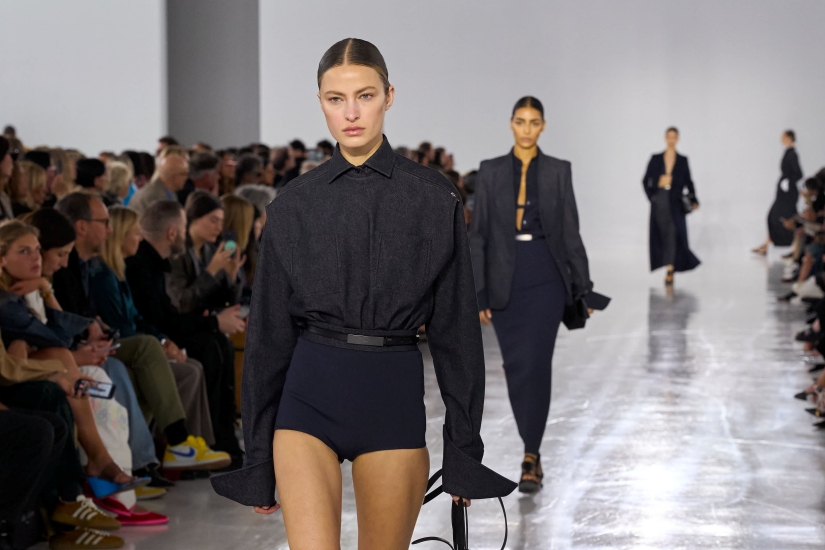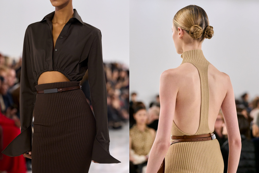 創意總監 Ian Griffiths 於這季採用了很多不對稱剪裁,再結合幾何設計細節,如風衣的新棉面料從外部縫合,使衣身展現出如同三角函數圖像般的流暢轉折;肩部或髖部呈不對稱折紙狀聚合排列,煥新演繹希帕蒂婭所處時代盛行的優雅垂褶長袍;針織半身裙與魚骨連身裙則流露些許如古埃及大祭司的衣著風格;又透過數學視角描繪橢圓曲線,巧妙地露出部分腰腹、肩膊與整個背部的妙趣結構,為簡約、幹練的造型注入更多性感女性魅力。西裝外套又以新穎的肩部形狀,銳利尖巧的同時亦顯方正纖窄,打造瀟灑時尚廓形。