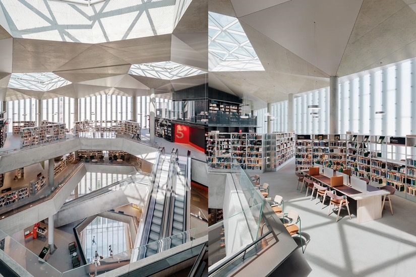 圖書館的外牆用上了透明玻璃帷幕,而室內則以 3 道光軸,巧妙地從地面延伸至屋頂,讓自然日光滲進室內。此外,館內備有約圖書、音樂、電影等約 450,000 種資料,更導入全自動圖書分類及借閱系統,同時設有互動影音裝置、迷你電影院、工作空間、餐廳等。