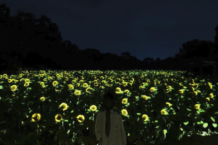 一片向日葵花海光看已是超級夢幻,而這個作品更提供互動體驗,當人們在發光的向日葵旁邊經過時,花卉會變得更耀眼,更會發出聲音,而向日葵的光芒更會傳播到周圍的花卉,讓它們也一併發出音調。