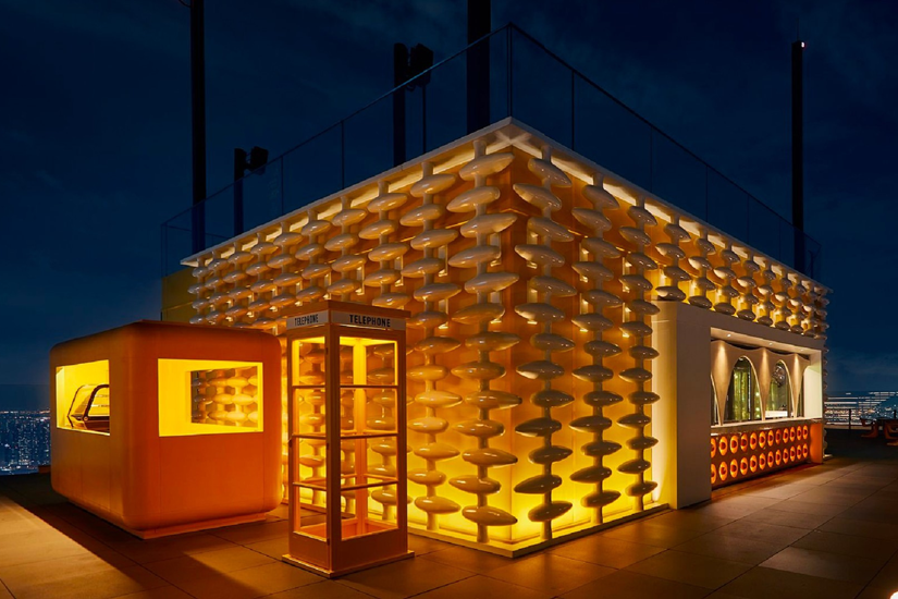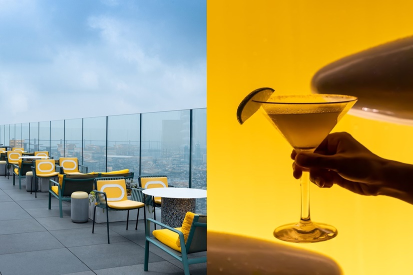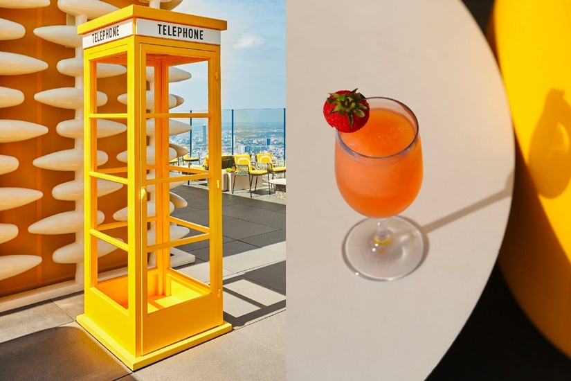 Sky Beach 的吧台區設計以鮮亮的黃色為主調,加上線條圓潤的裝飾、白色條紋及舊式電話亭等元素,前衛之中帶點復古感覺,在這裡可以拍出 IG-able 的美照!