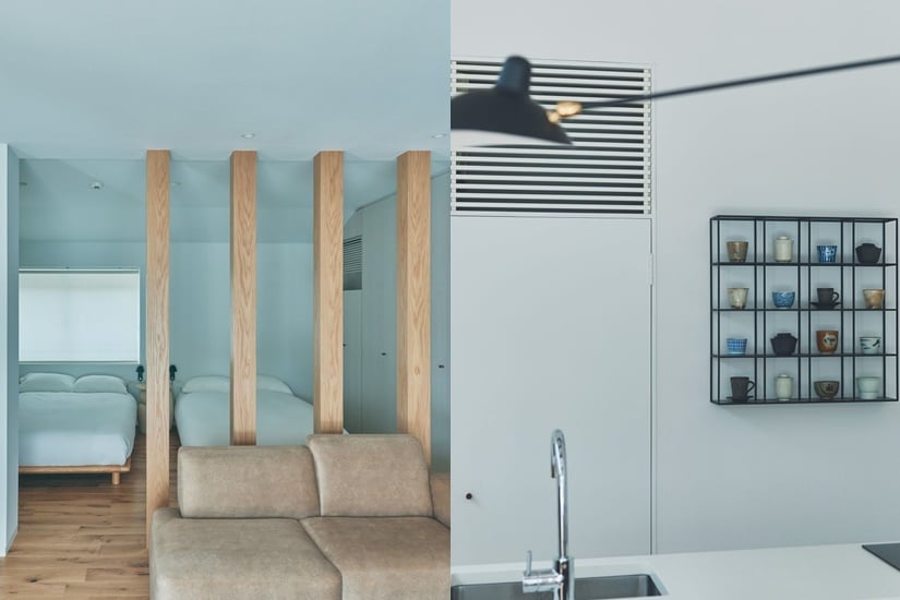 民宿由 Ryohin Keikaku 的室內裝飾品牌 IDÉE 設計打造,流露日本風格美學,當中揉合了現代室內設計、復古日式家具、Muji 風木系裝潢之外,更有日本藝術家的作品,古雅簡約!